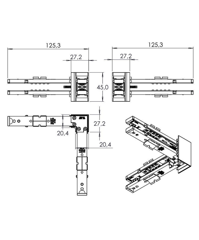 Adapter Angled Junction Connector for Tracks Double-Emission Series Milano MILH-6004 & MILH-6012